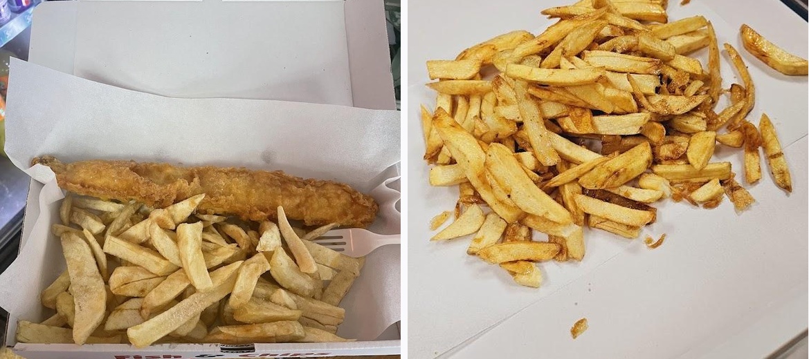 I only got chips but I think fish and chip chips are a good barometer of a chippy. So good ! Crispy but soft , also the lady was lovely and the vibes are so old school in there. I saw a piece of fish in the hot lamp and I walked home wishing I got fish and chips instead of just chips. Also I got a medium chips and can’t even finish a quarter of it . A gorgeous place and a local legend.